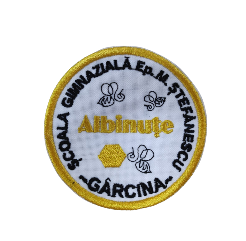 Emblema școlară brodată este un simbol distinctiv care reprezintă identitatea vizuală a unei școli. Aceasta este realizată prin broderie pe materiale textile și poate fi aplicată pe uniforme, sacouri, tricouri sau alte articole de îmbrăcăminte școlară. O astfel de emblemă este creată cu mare atenție la detalii și  include diverse elemente care sunt specifice fiecarei scoli. Se aplica prin coasere.