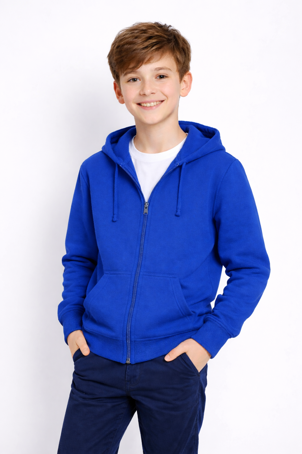 Hanorac școală albastru royal cu fermoar