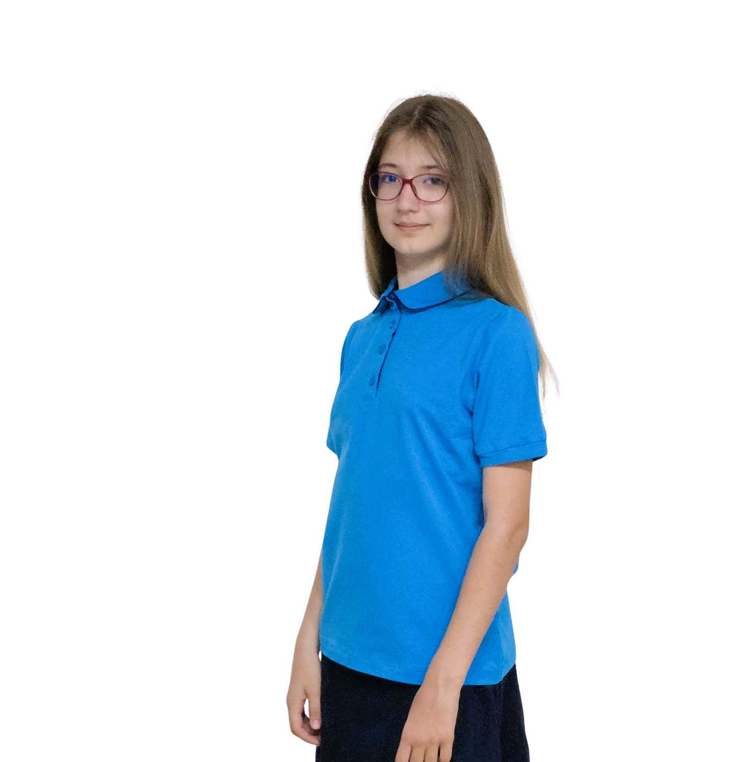 Tricou uniforma scolara pentru fete, din tesatura moale de bumbac cu elastan, guler rotund cu paspol inserat . Tricou scoala Gabriela se poate personaliza la comanda cu emblema scolii. Produs in România . Datorită variabilității luminii, culorile produsului pot să difere ușor față de cele prezentate în imagini.